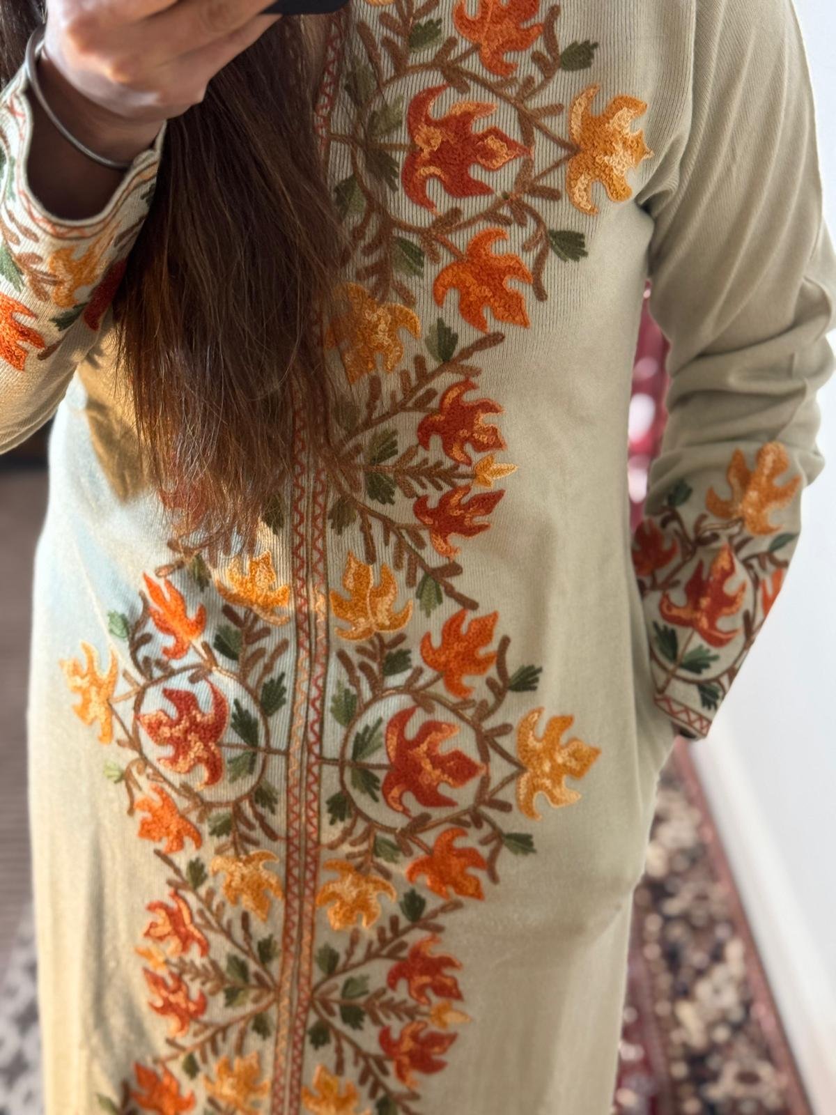 Bring home the essence of Kashmiri heritage with our Gorgeous Authentic Kashmir Woollen Three-Piece Embroidered Set and rediscover the joy of owning a garment steeped in tradition and creativity. Order now and let this stunning set redefine your fashion sense!