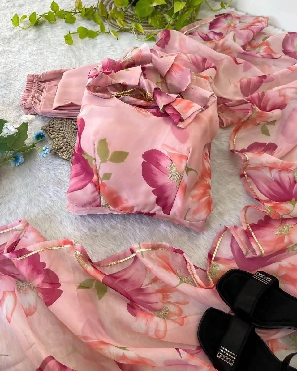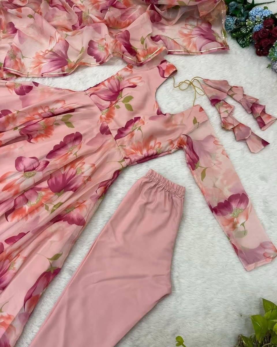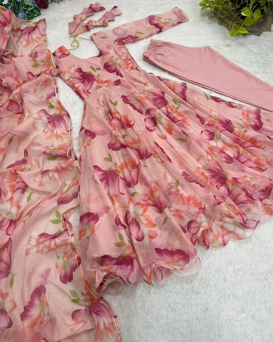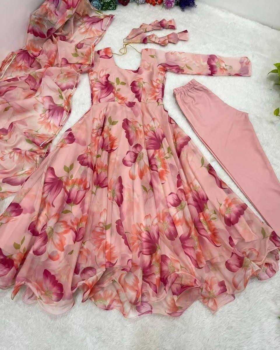 Introducing the Beautiful Floral Long Anarkali 3-Piece Dress, a breathtaking blend of elegance and tradition designed to make you shine in every special moment. This exquisite outfit features a long, gracefully flared Anarkali-style silhouette adorned with intricate floral patterns that bring out its timeless charm. Perfect for weddings, festive celebrations, or any grand event, this dress promises to be a show-stopper in your wardrobe.