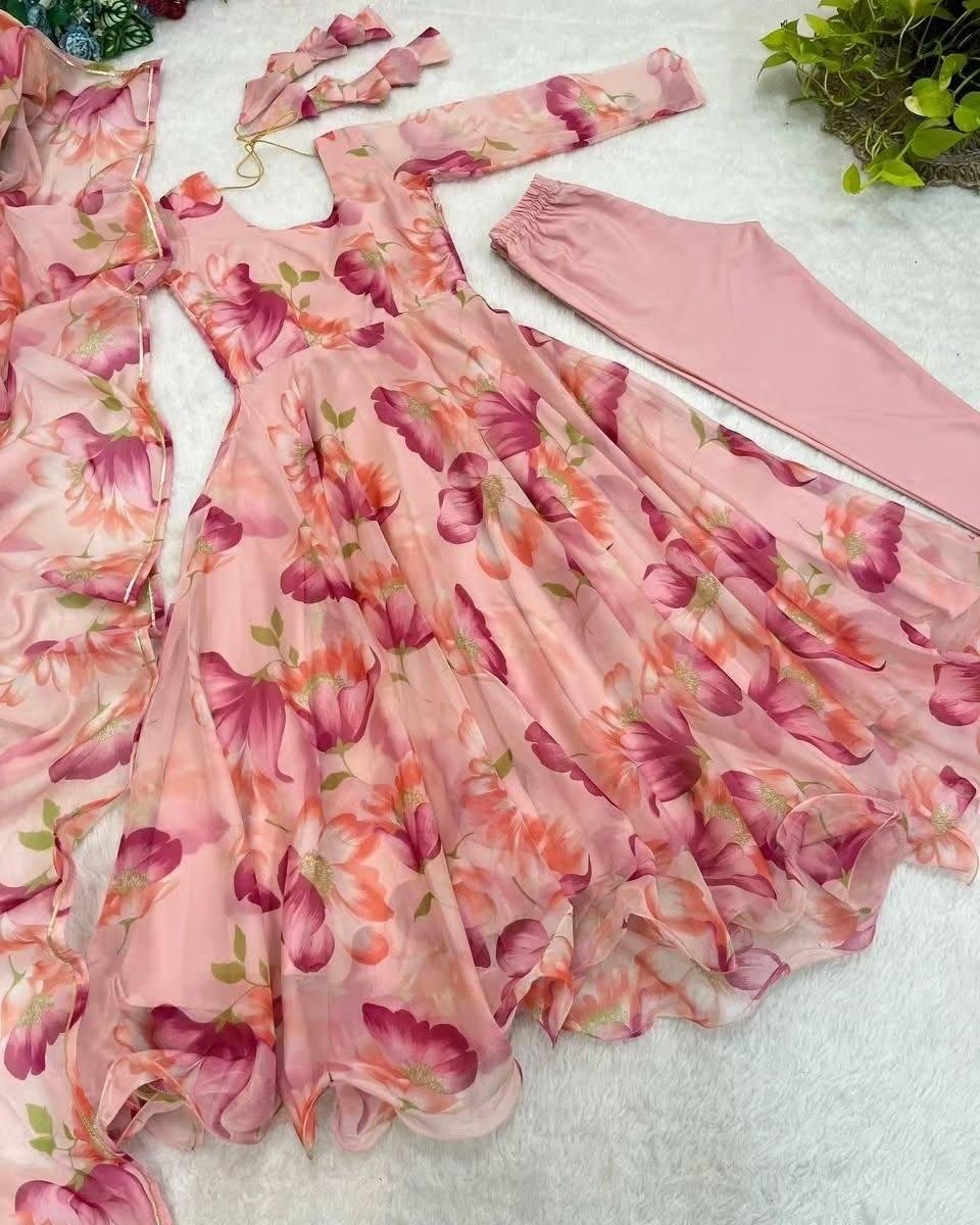 Designed to meet your expectations, the floral patterns on the Anarkali dress reflect vibrant hues that effortlessly enhance your overall look. Please note that slight color variations may occur due to phone or screen light, but rest assured, the artistry and craftsmanship remain consistent in every piece. Pair it with statement jewelry and elegant footwear for a complete, polished ensemble.