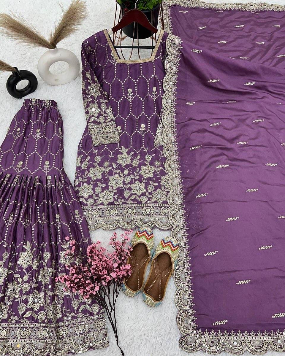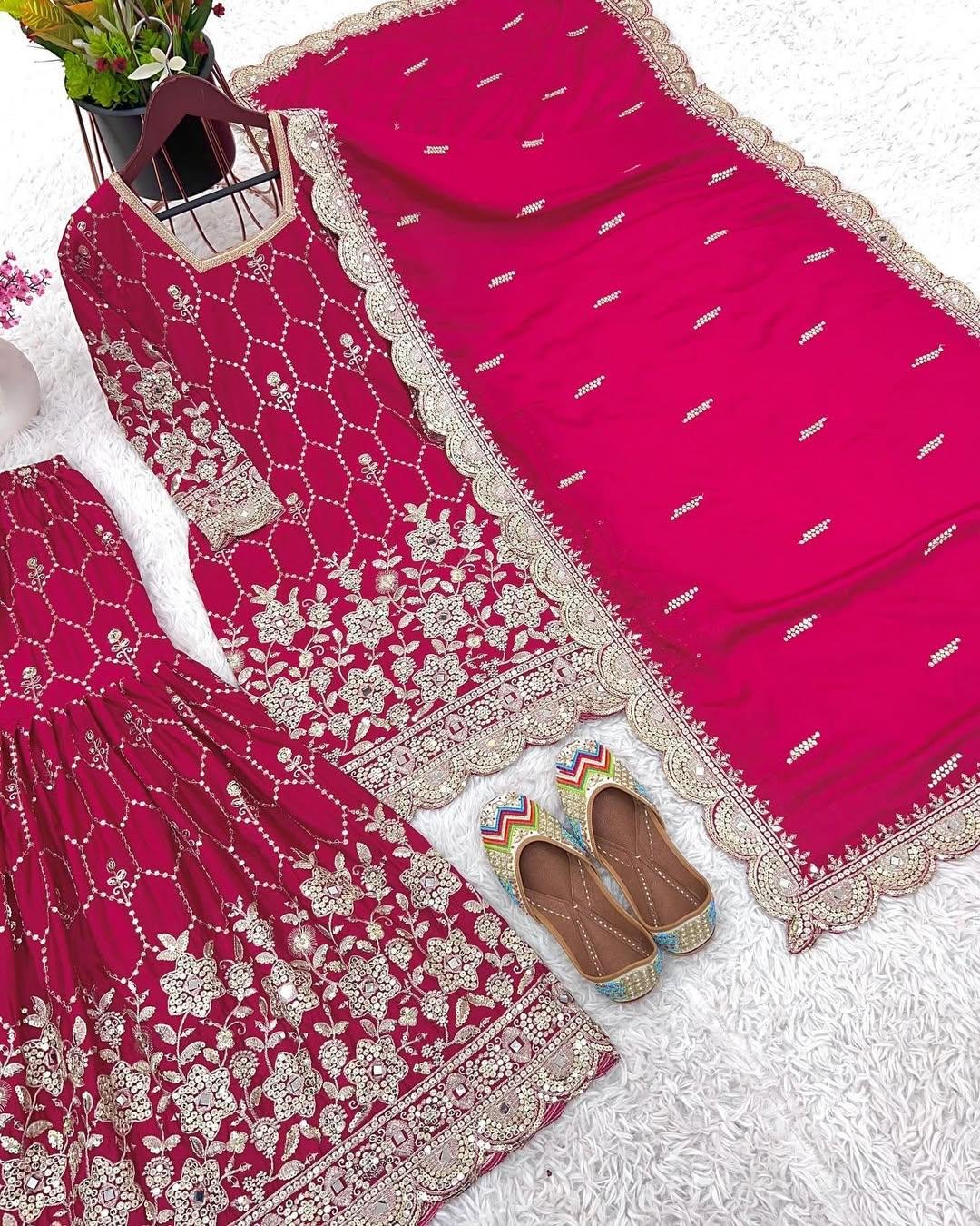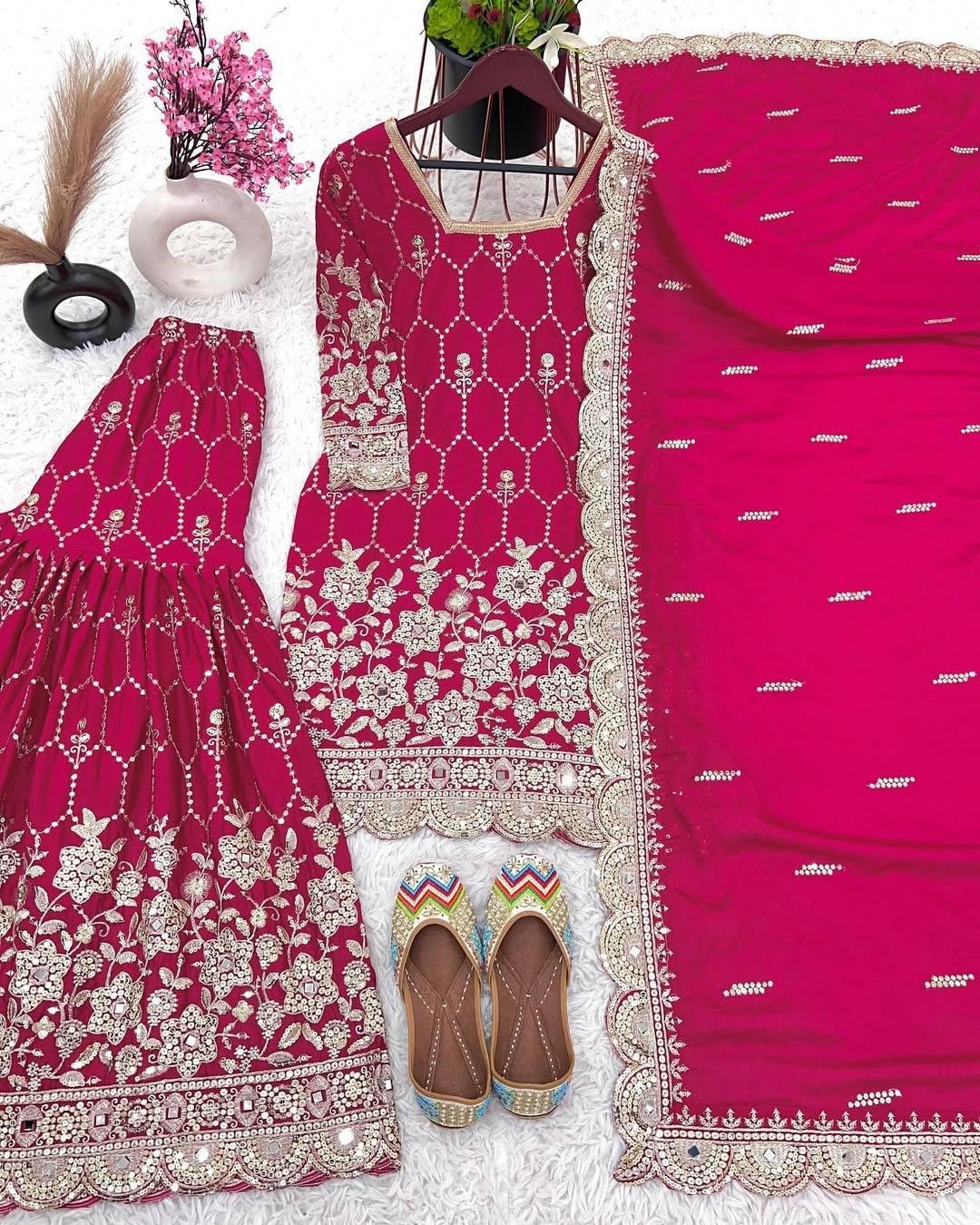 Step into sophistication with our exquisitely crafted Ghararah suit, a perfect blend of tradition and modern styling. Designed in premium-quality chinon fabric, this three-piece ensemble exudes luxury while promising unparalleled comfort for all occasions. Whether it’s a festive event, wedding reception, or cultural gathering, this outfit will elevate your style and make you stand out effortlessly.