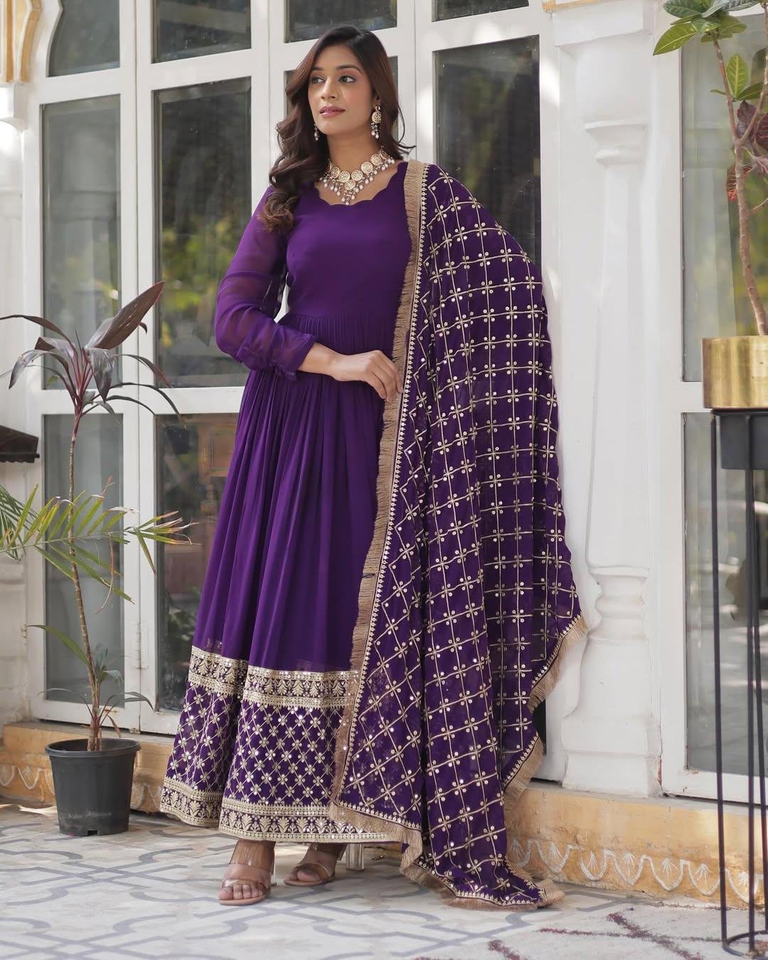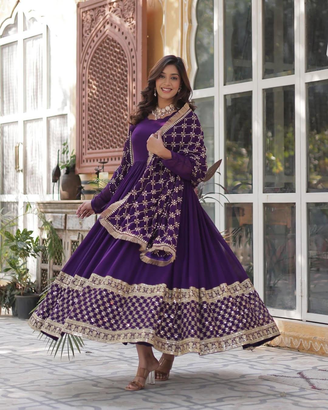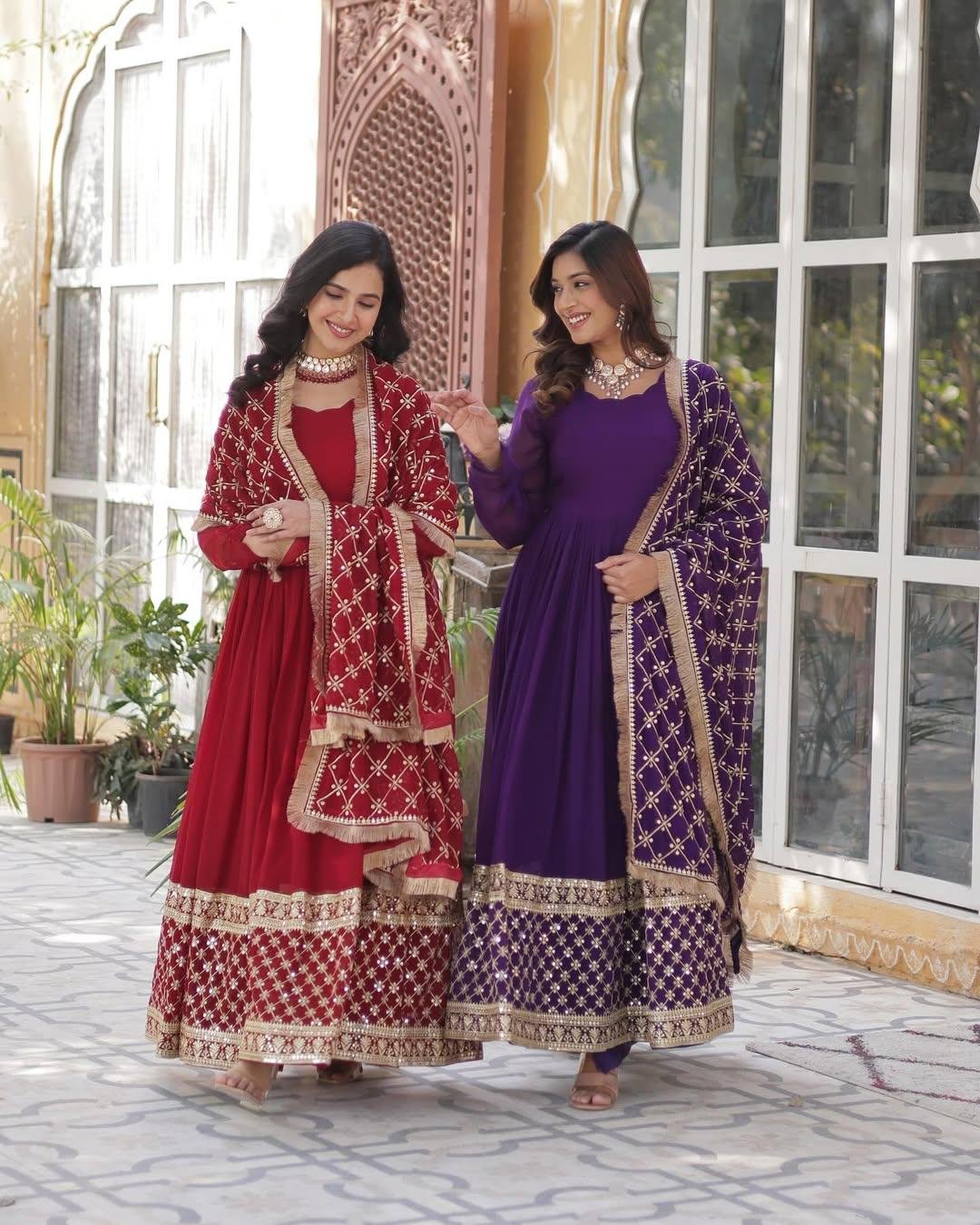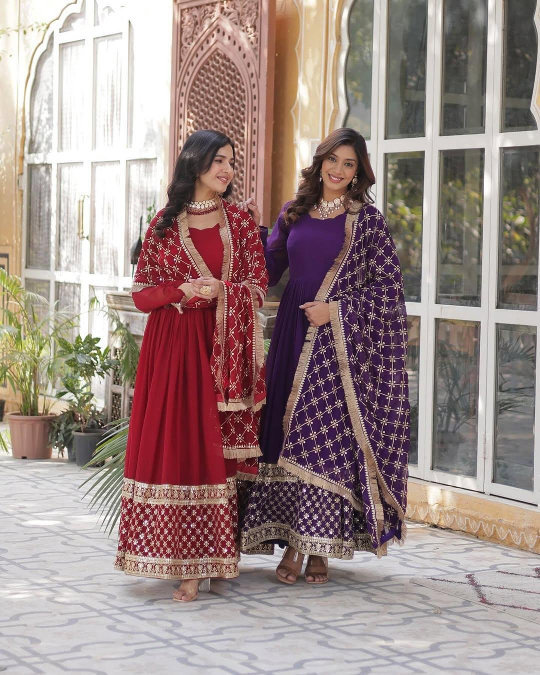 Constructed with high-quality fabric and expert tailoring, this partywear Anarkali ensures longevity and comfort. The vibrant colors and contemporary design make it a wardrobe essential you will treasure for years to come. If you’re seeking a dress that is both fashionable and functional, this is the ideal choice for you.