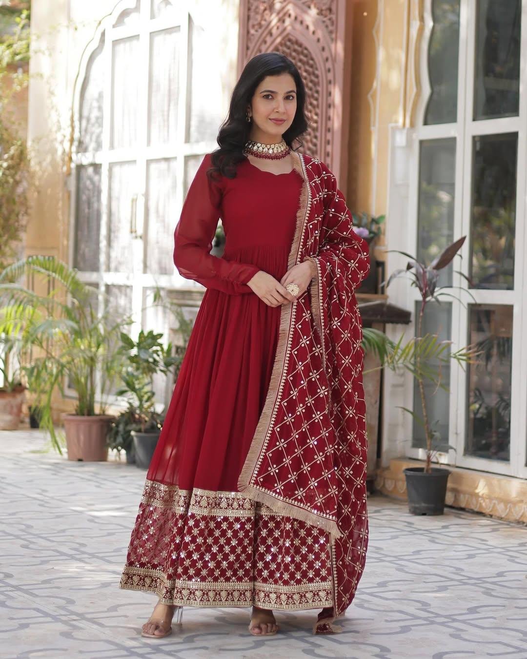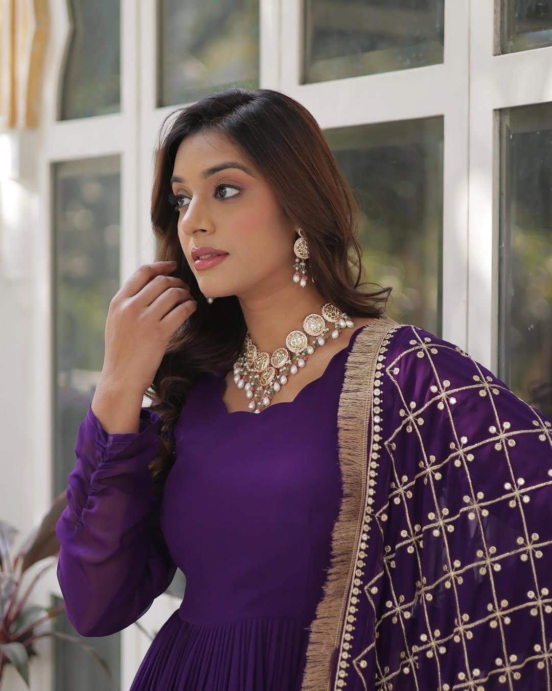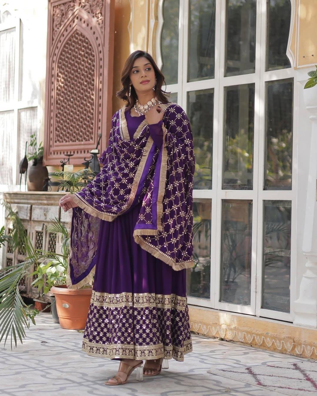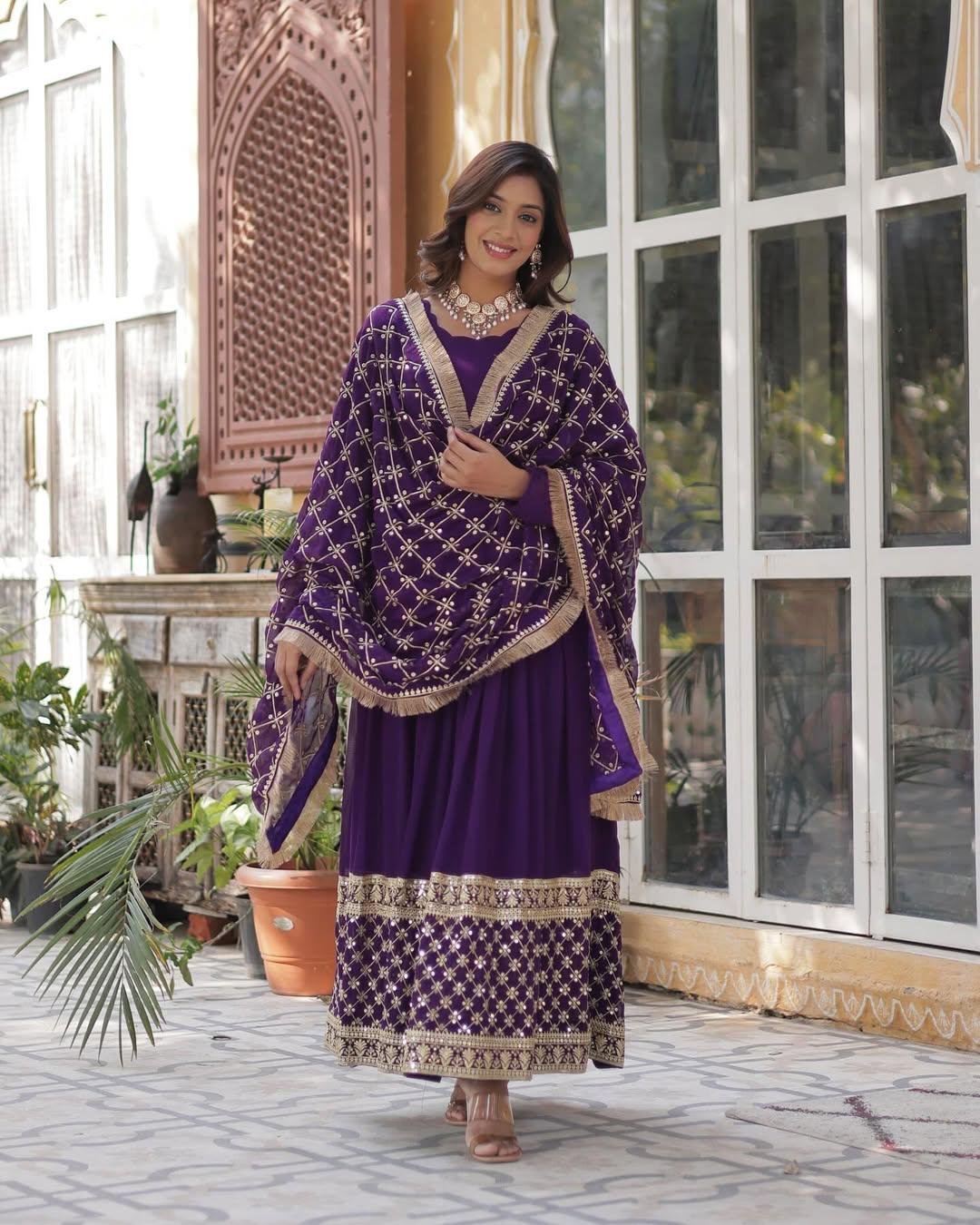 Constructed with high-quality fabric and expert tailoring, this partywear Anarkali ensures longevity and comfort. The vibrant colors and contemporary design make it a wardrobe essential you will treasure for years to come. If you’re seeking a dress that is both fashionable and functional, this is the ideal choice for you.