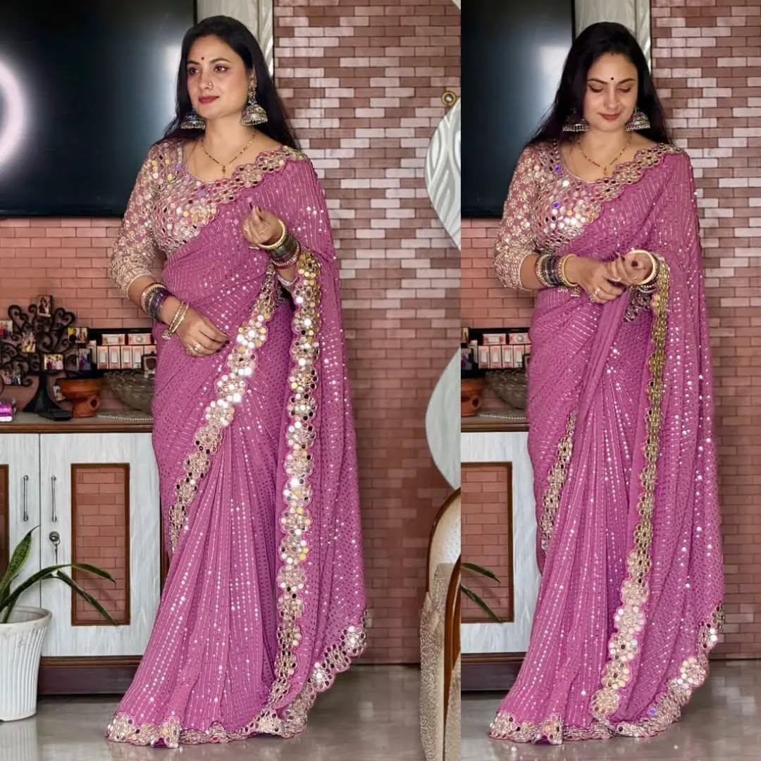 Heavy Realmirror Readytowear Saree with stitched blouse
