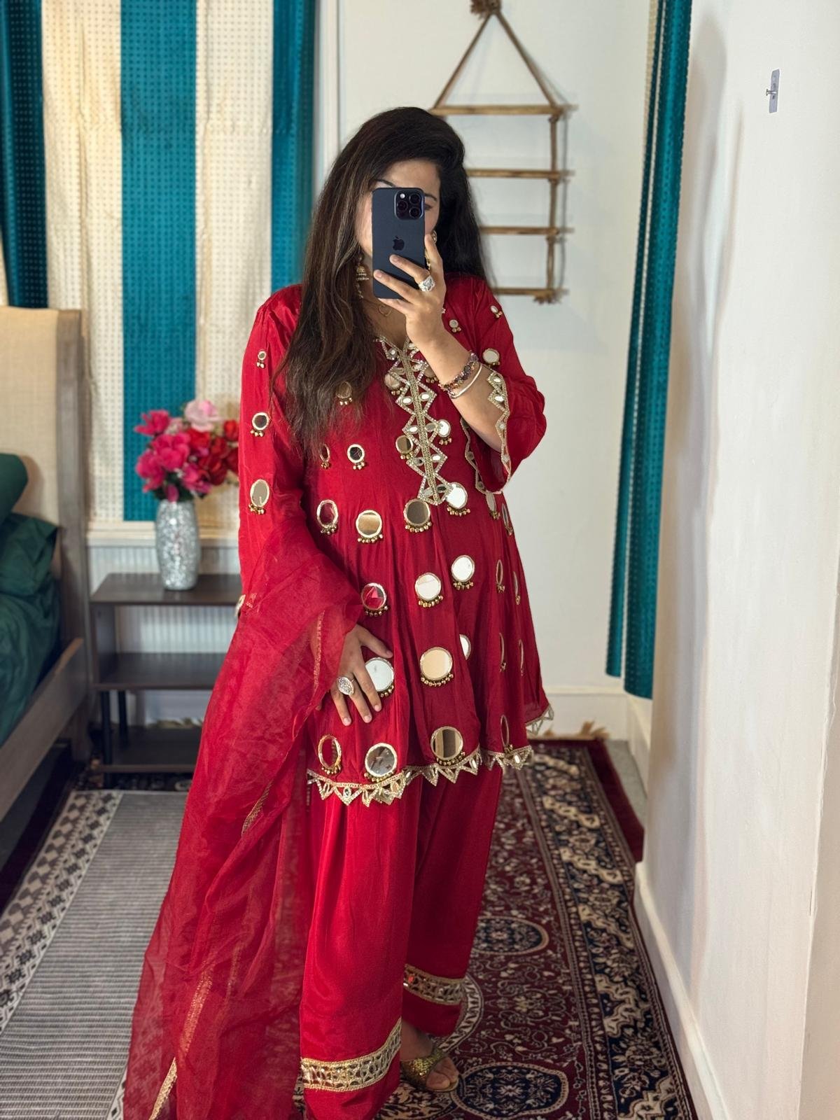 Elevate Your Style with Premium Crape Salwar PantsDiscover the perfect blend of comfort and sophistication with our Premium Crape Salwar Pants featuring real mirror work and gungru beads. Designed for fashion enthusiasts who appreciate traditional craftsmanship, these pants bring a timeless charm to any wardrobe. Whether you’re dressing for a festive gathering or a casual outing, this ensemble promises to be your statement piece.