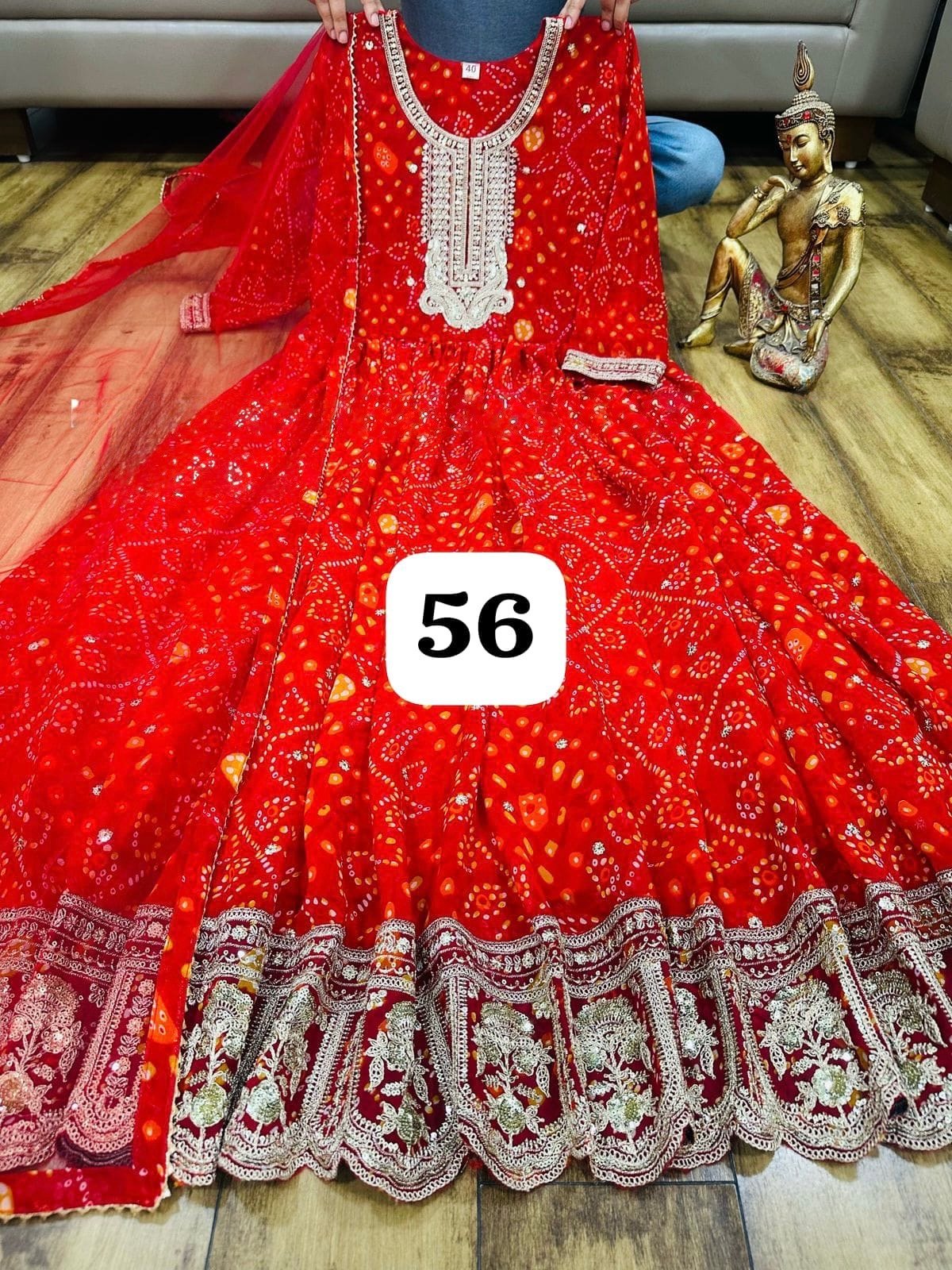 Beautiful 2 piece Bandani print Anarkali with Mesh inside