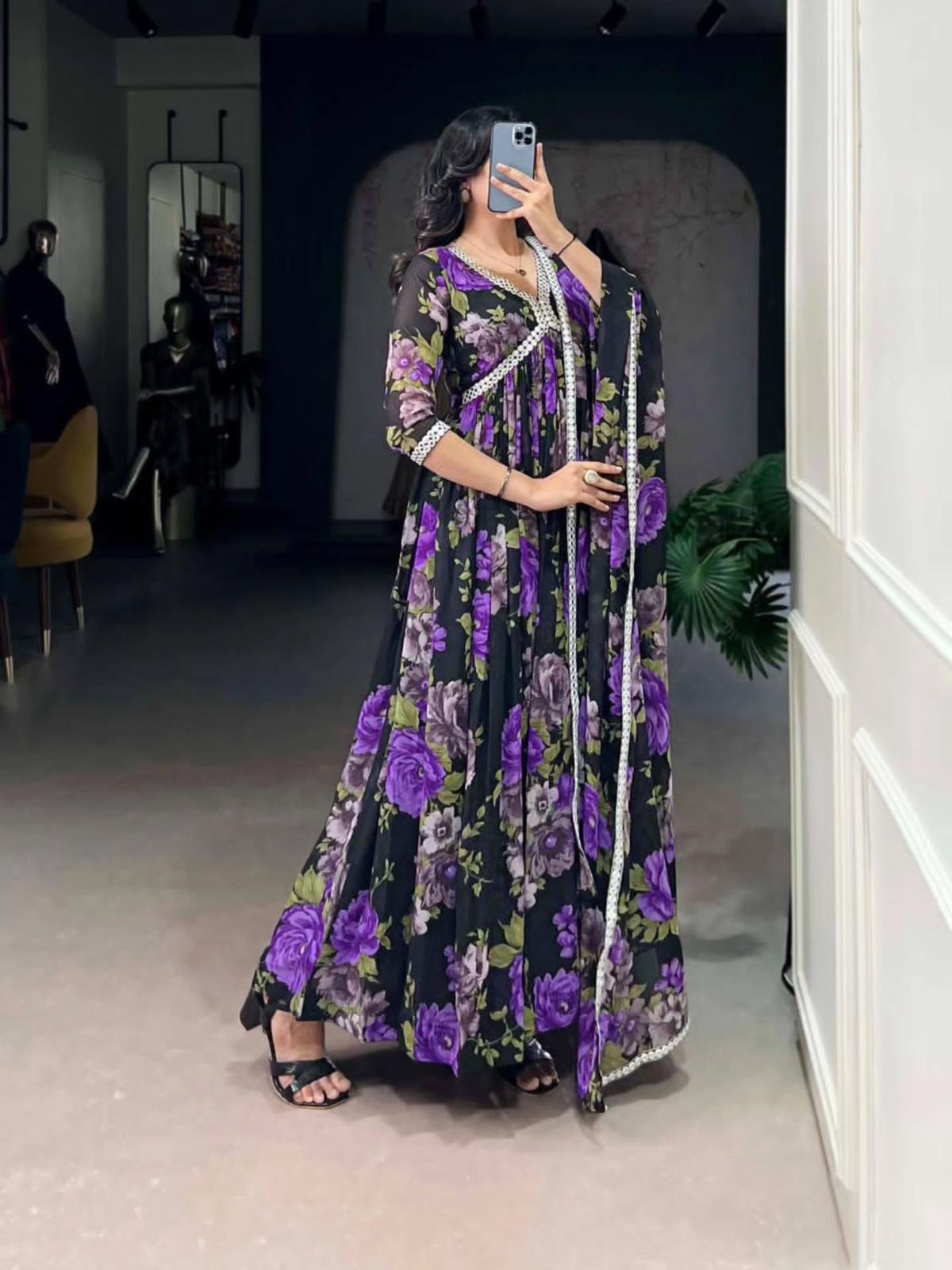 Absolutely beautiful 2 piece casual wear vibrant floral anarkalis im different colours