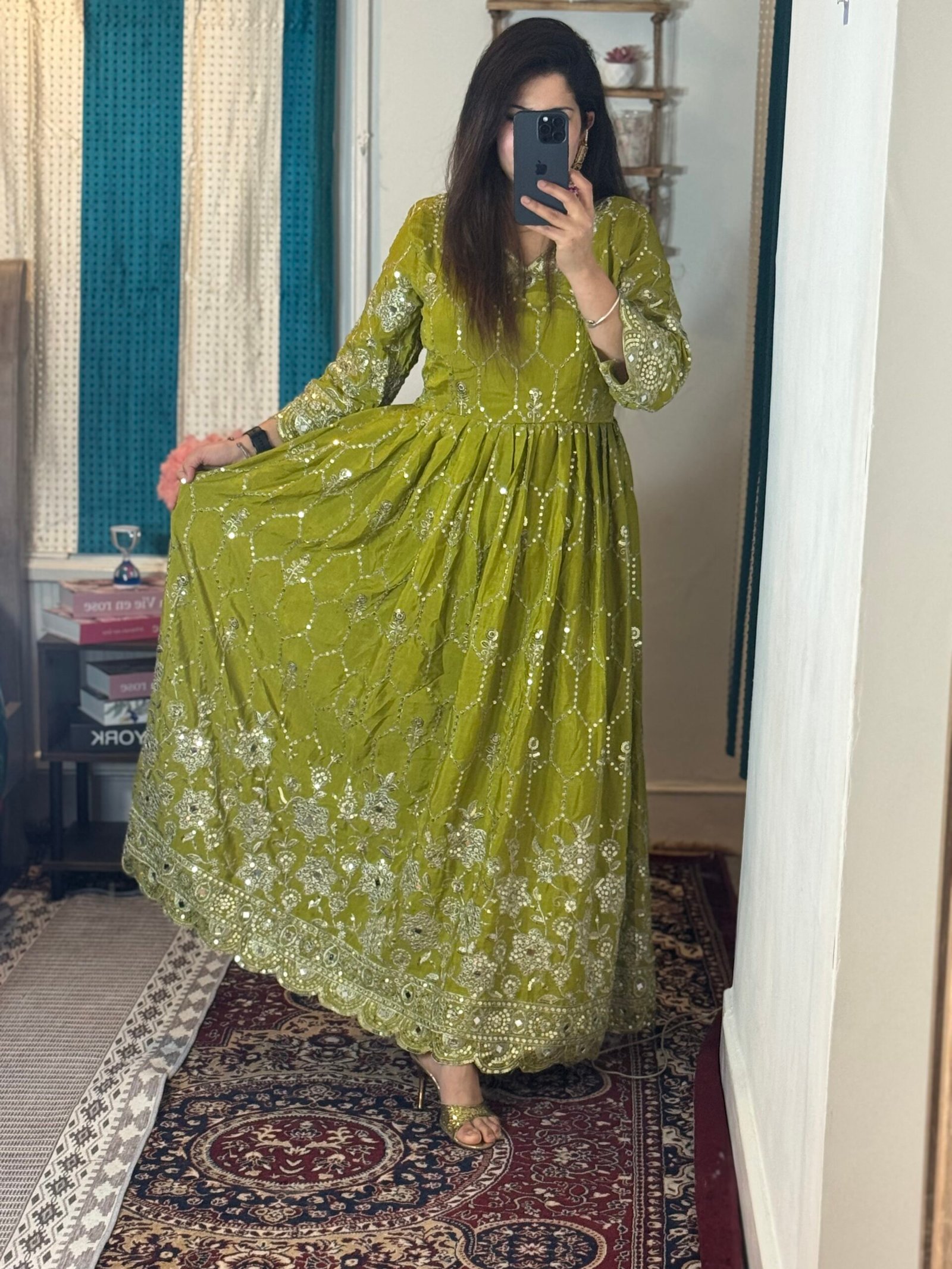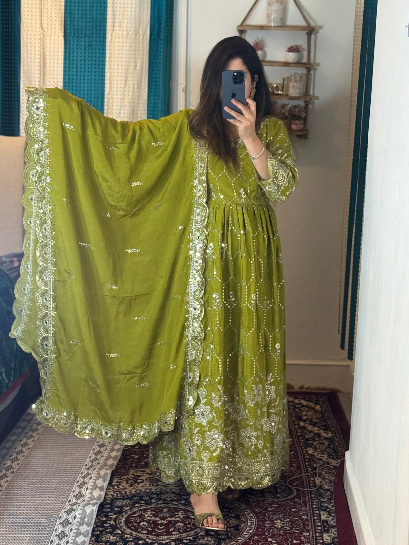 Real mirror detailed 3 piece Anarkali set